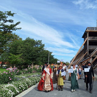 Über 20 Botschafter aus 12 Gartenträume-Anlagen flanierten über das Gelände und waren beliebte Fotomotive für die Gartenschau-Gäste. Mit dabei waren u.a. die amtierende Rosenkönigin aus Sangerhausen, die Elbe-Biber aus dem Elbauenpark Magdeburg und historische Persönlichkeiten wie Adam Olearius aus Aschersleben, Madame Karschin aus Halberstadt und Carl Christoph von Hoffmann nebst Gattin aus Dieskau.