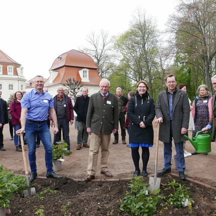 Am Mittwoch, den 4. September 2024, überzeugten sich Wernigerodes Oberbürgermeister Tobias Kascha, der ehrenamtliche Geschäftsführer der Stadtwerkestiftung Steffen Meinecke sowie der Vorsitzende des Gartenträume-Vereins Dr. Hermann Onko Aeikens vom erfolgreichen Anwachsen von 20 Sommerlinden und 10 Obstbäumen in den Schlossgärten Wernigerode.