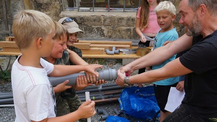 Im Rahmen der Förderung Kultur macht stark, findet in diesem Jahr in den Sommerferien eine Projektwoche unter Leitung des Künstlerkollektiv Selbstgebaute Musik im Kloster Michaelstein statt. Dabei dreht sich alles um die Musikmaschine des Salomon de Caus: drei Wasserräder, Balganlage, Stiftwalze, Orgelregister und die Figur der Galatea. Doch wie greifen diese einzelnen Teile ineinander? Eine Frage die sich nicht so leicht beantworten lässt, selbst wenn man den klingenden Automaten direkt vor Augen hat. Daher entstand die Idee, die Maschine als Experimentierstation von Kindern und Jugendlichen bauen zu lassen, um so anderen jungen Besuchern einen spielerischen Einblick in deren Wirkungsweise und Klangprinzipien zu geben. Denn wer kann die Bedürfnisse der Zielgruppe besser kennen als die Zielgruppe selbst?