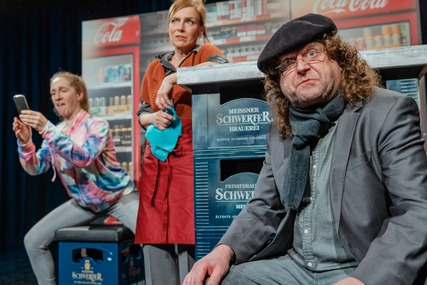 Ein Spätshop in Dresden. Drei Ureinwohner von Hertas Getränke-Oase gucken auf die Straße und wundern sich: Denn draußen auf der Straße ist Demo-Kampftag. Selbsternannte Abendlandretter werden begleitet von vier Gegendemos, Klimaktivisten marschieren gegen Klimaleugner, Impfgegner fordern das Kaiserreich zurück (aber ohne Impfzwang), Gendergegner prallen auf Genderbefürworter*innen, Attila Hildmann kocht nicht nur vor Wut, sondern auch vegane Nudeln und ein Traktorencorso hupt gegen Pestizidverbote, Polizisten halten die Stellung, ein Außenreporter von Pieschen-TV verliert den Überblick. Doch ob Chemtrail-Warner, Aluhut-Träger oder Staatsschützer: Durst haben sie alle! Und so wird der Späti zum Nebenkriegsschauplatz - Weltrettung zwischen Büchsenbier und Bockwurst. Nach dem gefeierten Programm HÜTTENKÄSE ist IM KÜHLSCHRANK BRENNT NOCH LICHT das nächste Kabarettstück aus der Feder von Philipp Schaller und Michael Frowin, der auch Regie führt.